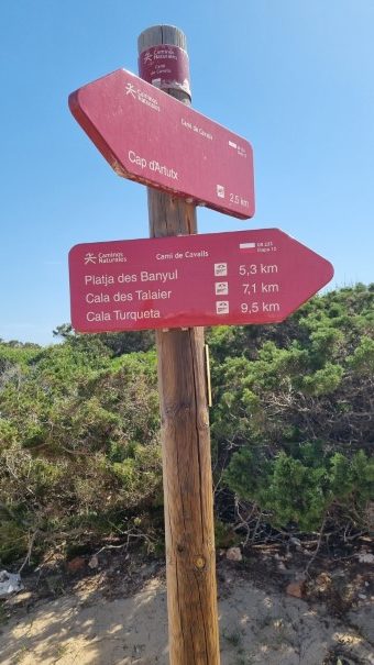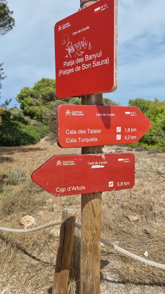 Un panneau nous montre les prochaines étapes. Cala Galdana n’est pas encore indiqué.