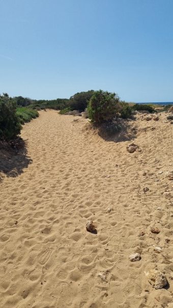 Après Cala d’en Bosc , le terrain passe sur la Playa de Son Xoriguer, puis on part dans un partie moins animée et plus sauvage.