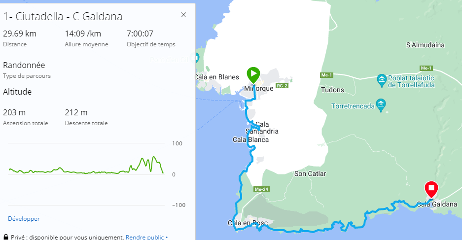 La première partie du parcours s’effectue en ville de Ciutadella.