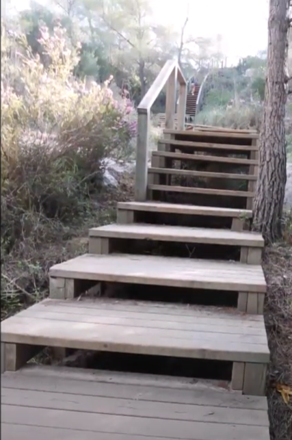 On se trouve au niveau de la mer et on monte à 45m sur la falaise. Sur un chemin « normal » ça aurai passé facilement, mais « droit en haut » avec les escaliers .. c’était chaud.