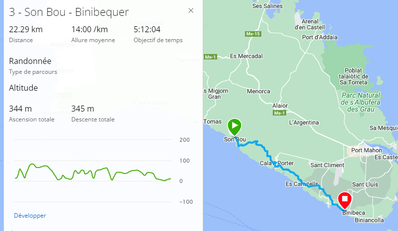Notre prochaine étape est Cala en Porter, à 4.5km. On en a déjà fait 3.5km