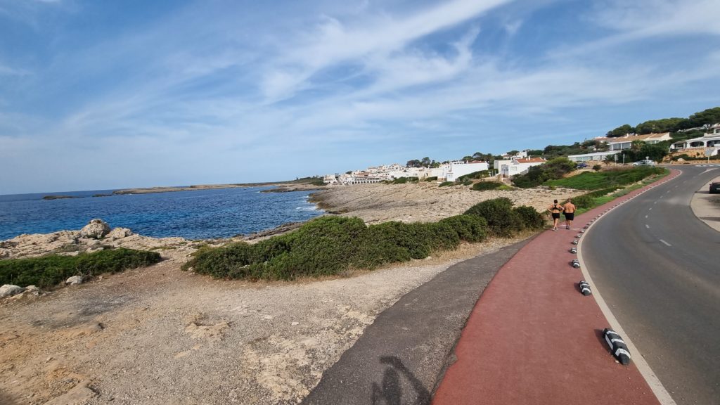 On marche 2km le long d’une petite route pour rejoindre le trottoir le long d’un grand axe direction Es Castell.