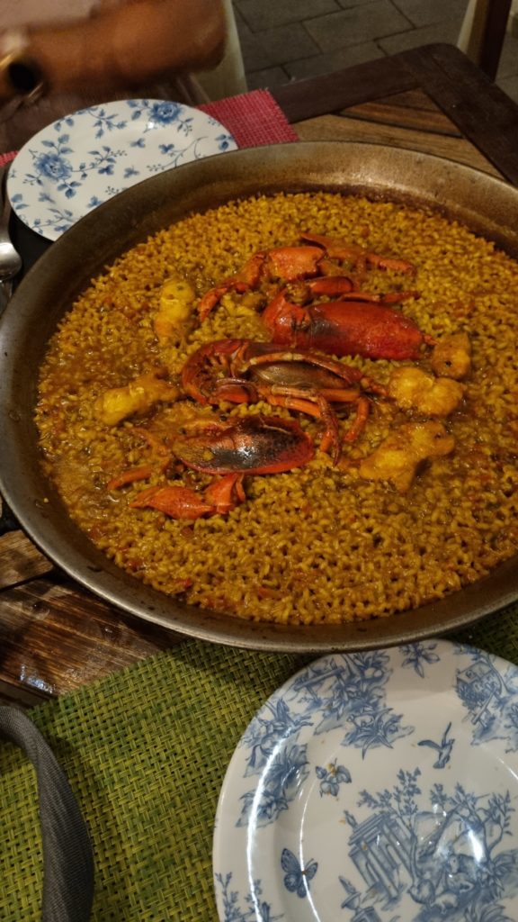 Au retour on profite d’une bonne sangria sur une terrasse de Binibèquer Vell .. pour terminer par une excellente Paella à la langouste sur le port de Mahon